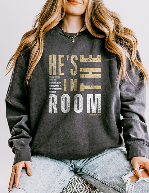 Have you seen our newest design? “He’s in the room” - created for our local Assembly’s Feast theme shirt and now available on our site in 100% cotton tshirts and sweatshirts.