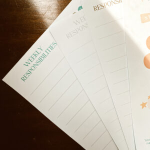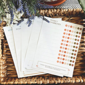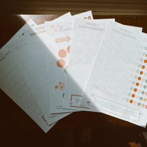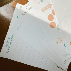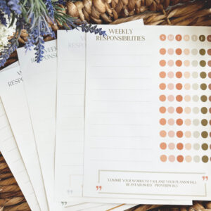 Another product in our “Beautiful Scriptures” line is our responsibility “chore” charts! There is a set of 5, so you can use a different one for every week of the month, and they each have an inspiring scripture at the bottom to encourage your little ones in their daily tasks. These are blank, so you can write in your own tasks, and print and use them for all of your children! Also included is a super fun accomplishment tracker if you like operating on a reward system with your children after they’ve completed their daily, weekly, or monthly tasks. You could even laminate them and use as a wipe/on/off chart if you didn’t want to have to reprint new.