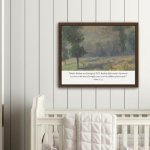 Designed for nurseries, children’s rooms, and family spaces, this artwork serves as a daily reminder of the blessing entrusted to parents. Its warm tones, gentle texture, and timeless Scripture make it a keepsake piece that grows with your child and continues to speak truth into your home.