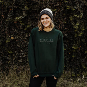 These sweatshirts are a medium weight and super soft on the inside! I love to go up a size in these for a truly big, comfy oversized fit, perfect for year-round wear!