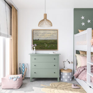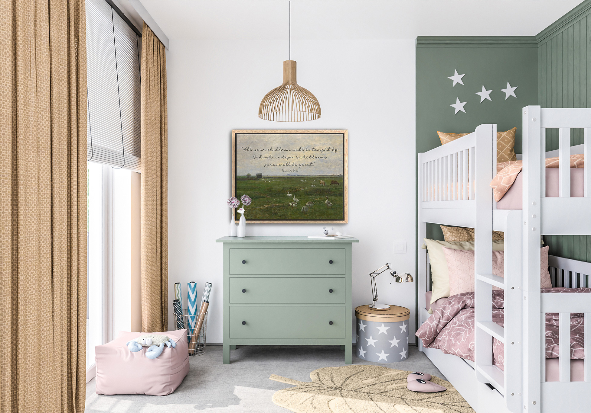 With its warm tones and vintage character, this piece is perfect for nurseries, children’s rooms, homeschool spaces, or anywhere you want to proclaim Yahweh’s covering over your children. It serves as a daily reminder that He Himself is faithful to shepherd, teach, and bring peace to the hearts of your little ones.